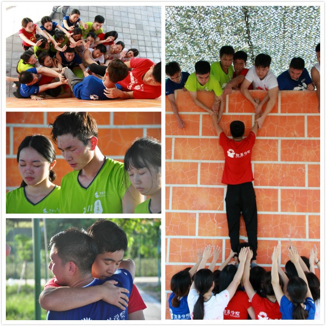 随着教官的一声呐喊,所有的男生都冲到前面甘愿做人梯,女生用手护住男生。男生们汗水、沙土粘满了衣服,肩膀被踩出红红的血痕,但他们为完成任务无怨无悔、默默坚持。在任务进行时,担任“人梯”的男生体力消耗巨大喘息不止,同伴踩在他们身上时心痛难忍、泪洒现场。在“毕业墙”任务完成后,未来星们纷纷相互拥抱、欢呼、掌声久久不断。