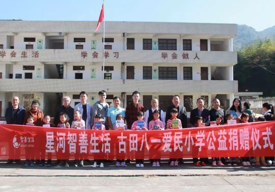 2018年10月,星河世俱杯(中国)生活古田公益行,走进革命老区古田镇八一爱民小学开展爱心捐赠,捐助一批太阳能热水器、书架以及图书。太阳能热水器的捐赠解决了学校热水供应问题,改善学校硬件条件。图书的捐赠让条件艰苦的学生也可以阅读优质读物,共享教育资源。以实际行动支持教育事业,用暖心善举彰显社会责任。