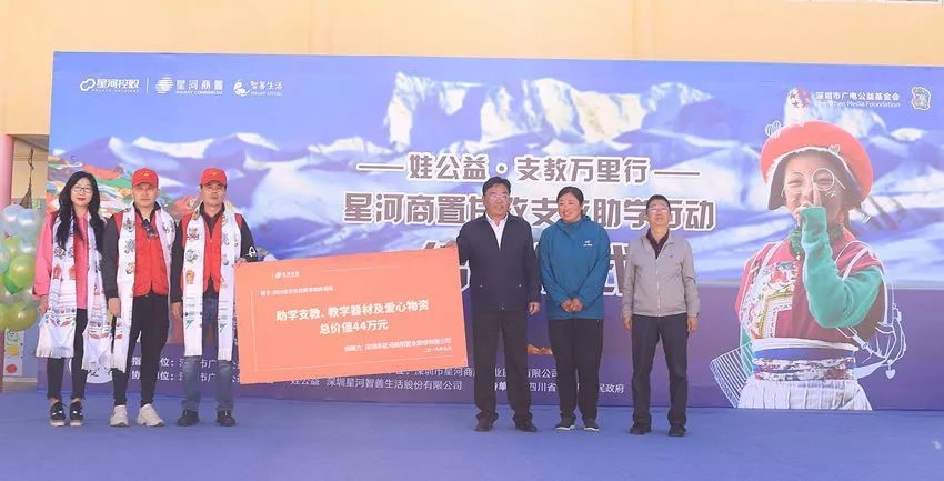 2019年5月,星河世俱杯(中国)生活与星河商置公司携手举办“520吾爱同享”活动,远赴四川省甘孜藏族自治州甘孜县,支教万里行,向边远地区的儿童和教师,展开针对性的课程帮扶和公益援助。除了助学支教,还在甘孜县人民政府的精心指导下,还将对甘孜县色西底乡的贫困户开展“一对一”精准扶贫工作,并捐赠10万专项扶贫基金,用于全乡贫困户脱贫帮扶工作,凝聚广泛的公益力量募集44万元公益捐款,用于当地贫困幼儿园购买教学书籍、设备及器材,为当地贫困地区和孩子们带来更多希望和改变。