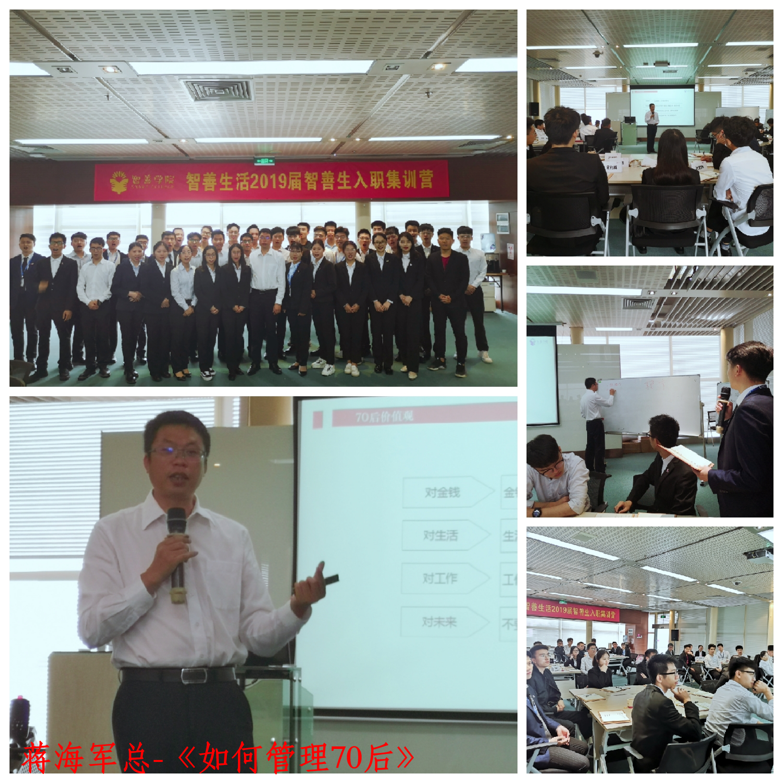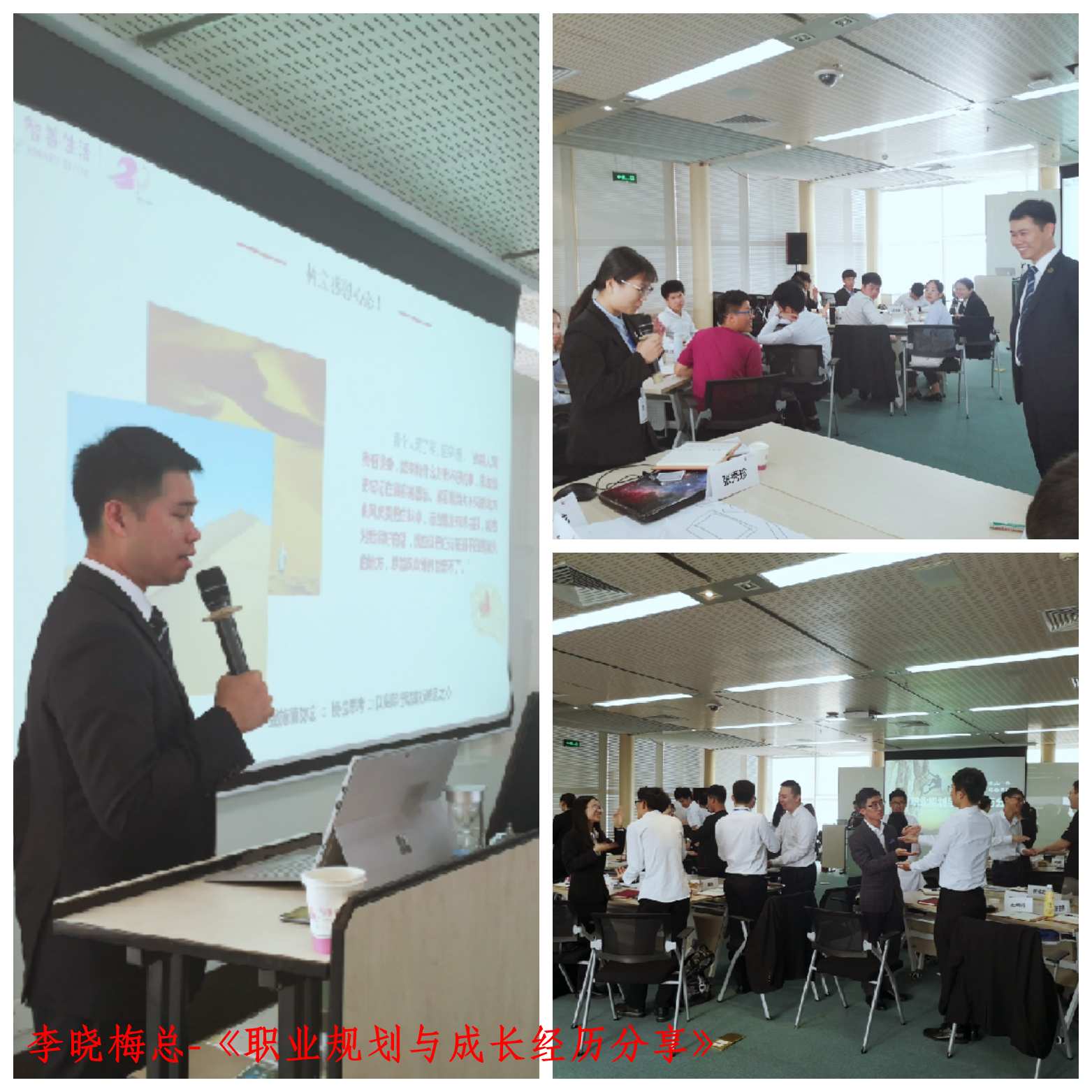有效的管理沟通、高效的工作效率、匹配的职业生涯规划均是职场生活成功的关键因素。《如何管理70后》从70后群体共性出发,传输职场新生代与资深职场中坚力量的沟通相处之道;《逻辑化思维与表达》让同学们学会以金字塔原理构建高效工作及表达方法;《职业规划与成长经历分享》通过李晓梅总从文员到分公司总的职场蜕变分享及实用的职业生涯规划四步法,帮助同学们找到各自未来的目标。