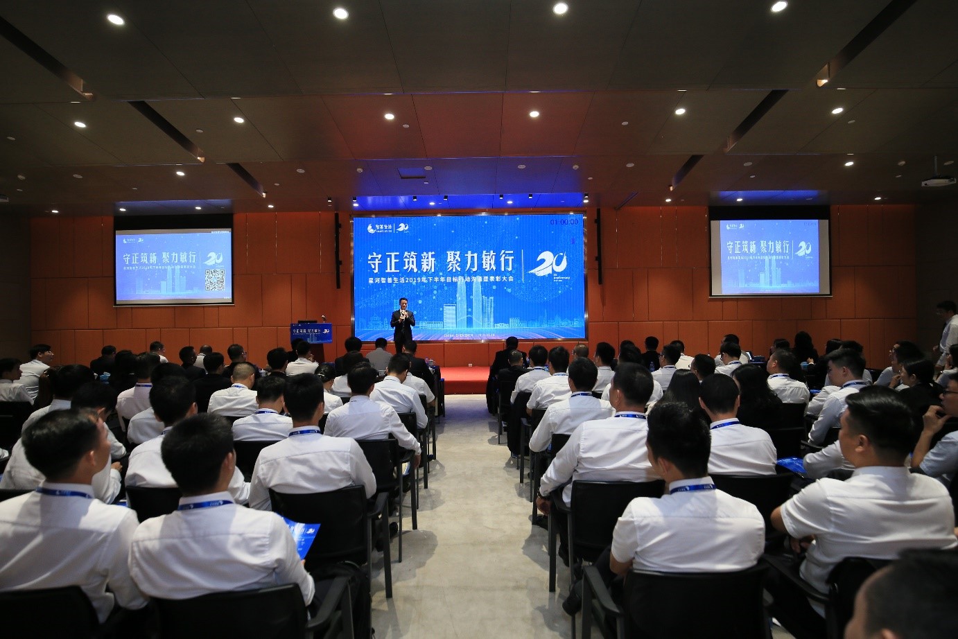 2019年7月14-15日,为期两天的星河世俱杯(中国)生活2019年下半年目标行动沟通暨表彰大会在星河world二期国风艺术馆隆重召开,近180名星河世俱杯(中国)人齐聚一堂,回首过往,展望未来。本次大会的主题是“守正筑新,聚力敏行”,星河置业集团副总裁林培涛总担任本场会议的主持人。
