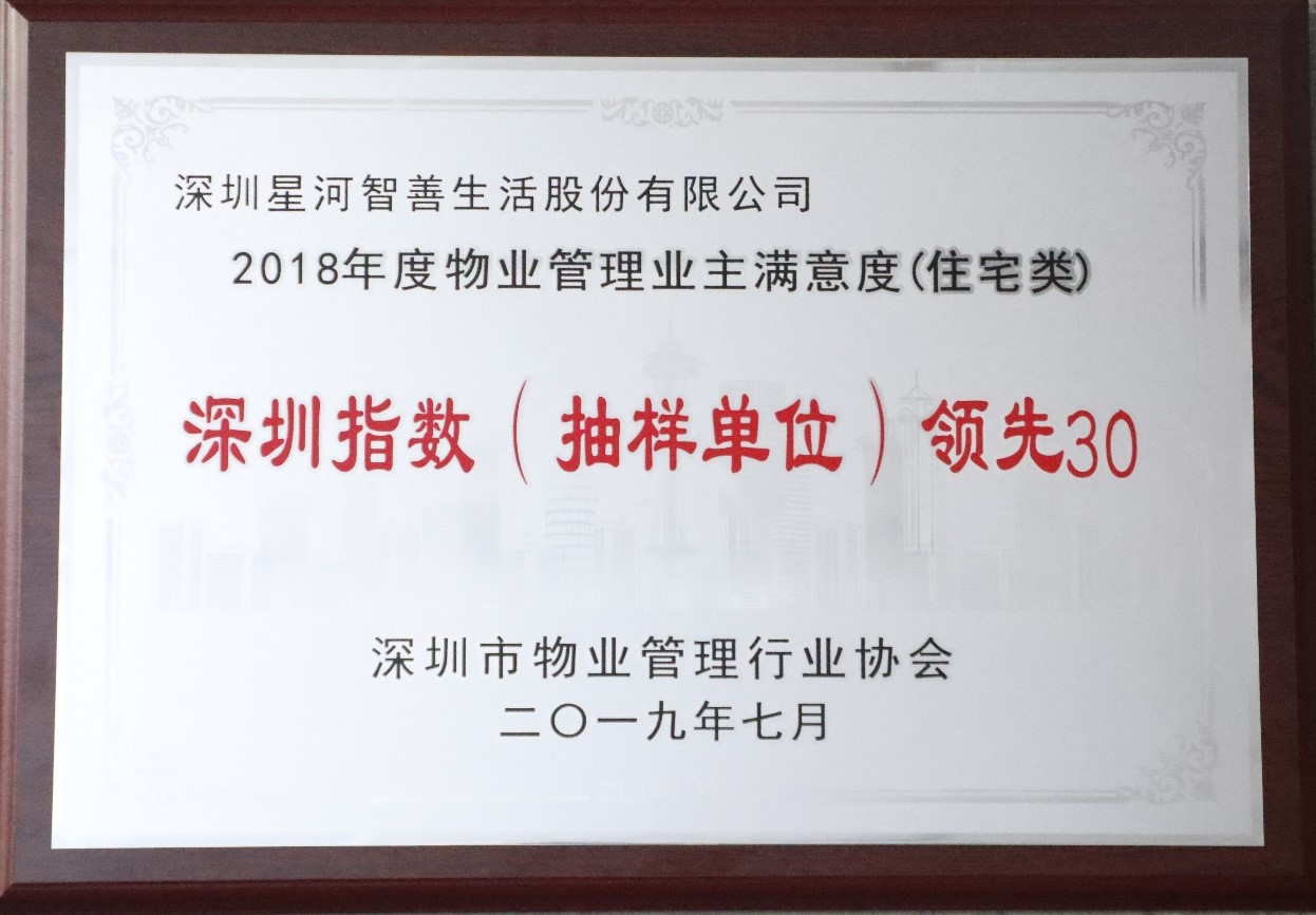 2018年度物业管理业主满意度深圳指数(抽样单位)领先30企业