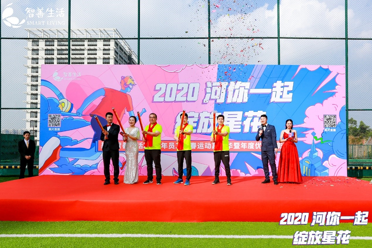 紧接着,在激昂的乐声中,由星河智善生活总裁林培涛、总经理李炯、副总经理王如波拉响礼炮,星河智善生活2020迎春运动嘉年华正式启幕。